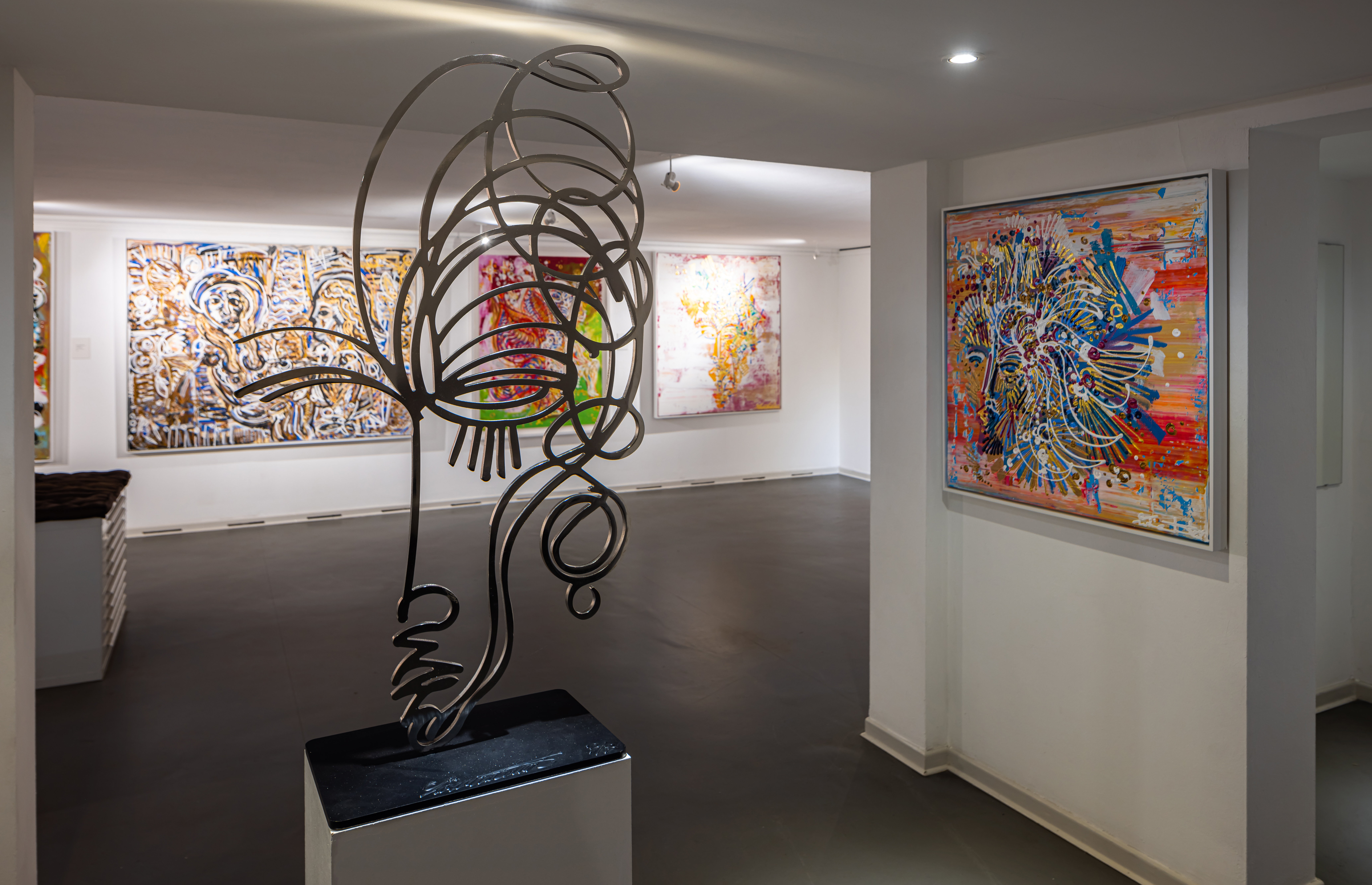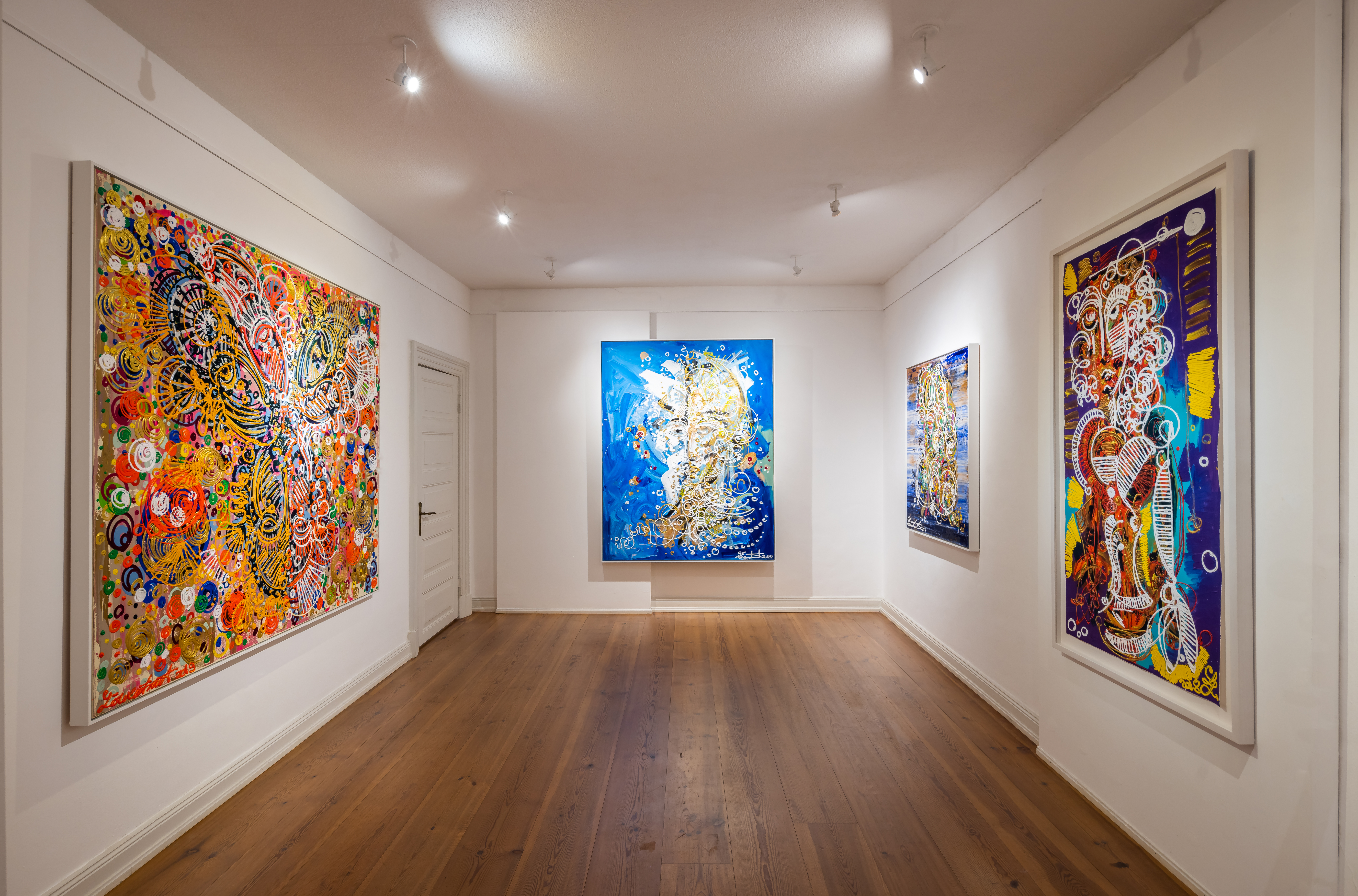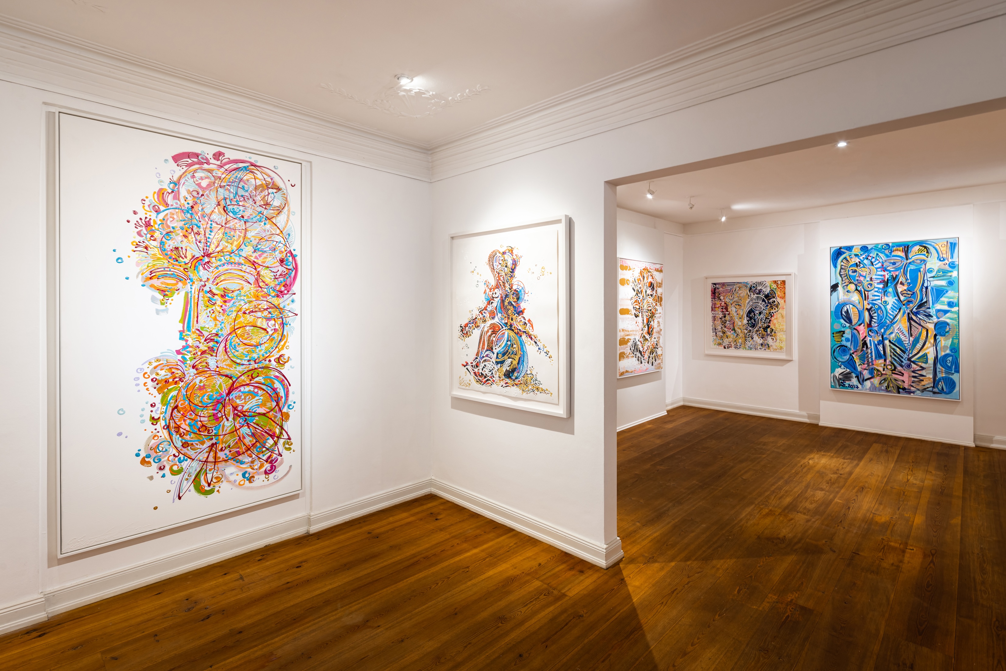 Der Abstrakte Expressionismus eines Willem de Kooning beispielsweise zeichnete sich besonders durch eine gestisch-expressive Handschrift aus. Seine Arbeiten waren immer eine Auseinandersetzung mit der Abstraktion und der ständig wechselnden Anordnung von menschlichen Figuren im Auflösungsprozess. Die Nichtvollendung des einzelnen Bildes erhob er dabei zu einem wichtigen Prinzip. Und so erscheinen auch die Bilder von Leon Löwentraut manchmal merkwürdig unfertig, oft wie mitten im Malprozess unterbrochen skizzenhaft und suggerieren, dass der Künstler vielleicht morgen an dem Werk weiterarbeiten wird oder aber die Fertigstellung gleich ganz den Betrachtern selbst überlässt.“