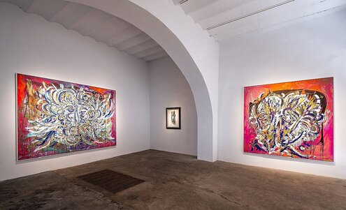 Die Ausstellung „Believe in Progress“ umfasst rund 20 Gemälde, fünf seiner berühmten Kohlezeichnungen, zwei Skulpturen und das Ergebnis einer spontanen Malperformance. Die Unikate sind größtenteils in seinem Atelier in Portugal entstanden. Die Bilderschau läuft noch bis zum 22. September 2024.