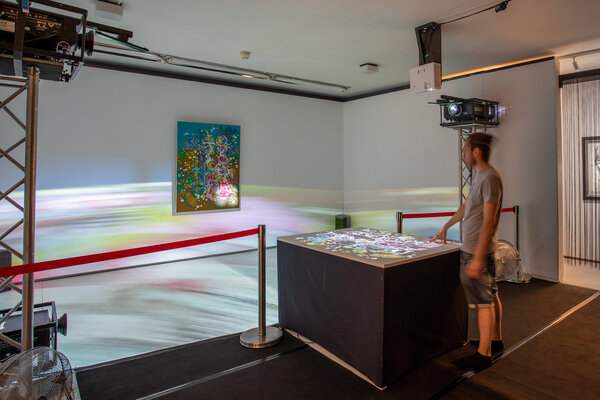 Für Löwentraut fühlt sich Malen wie Fliegen an – um das erlebbar zu machen, entwickelten Studierende der Hochschule Kaiserslautern gemeinsam mit dem Künstler das Raumerlebnis „Volar“, bei dem die Besucher dieses Gefühl analog wie auch digital erleben können. Immersiv. Interaktiv. Informierend. Inspirierend.